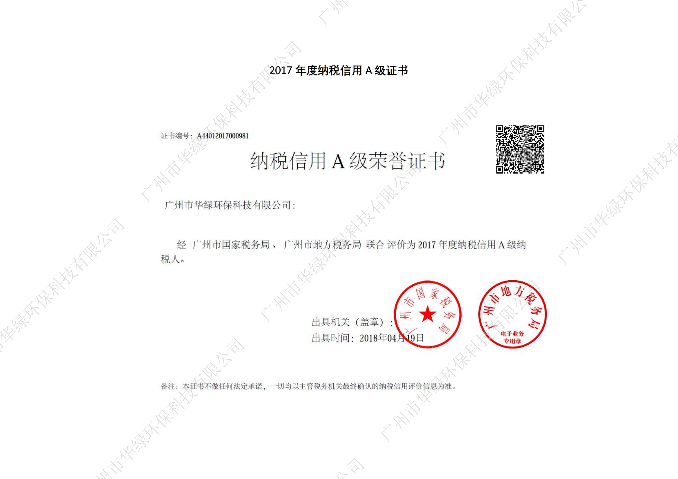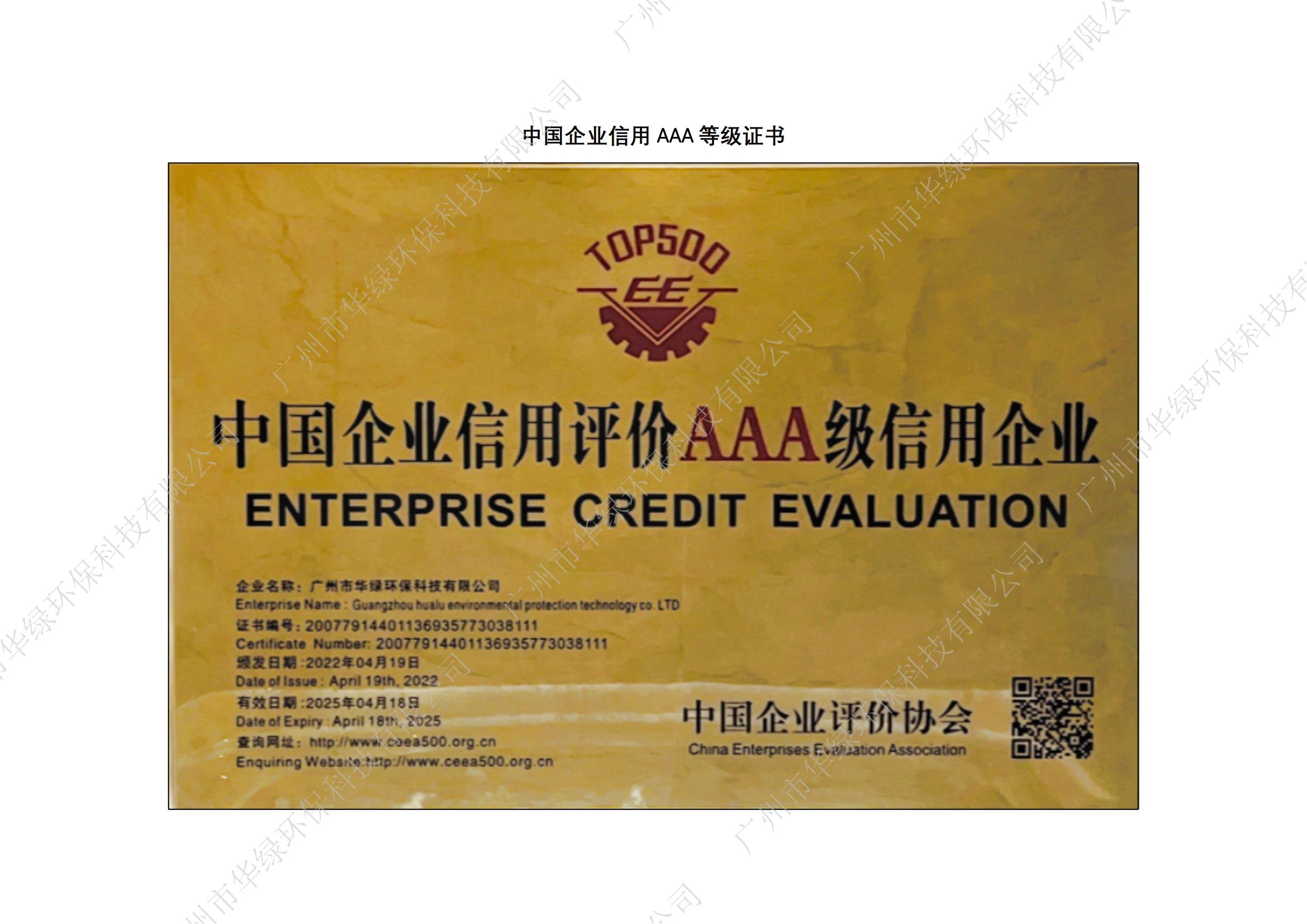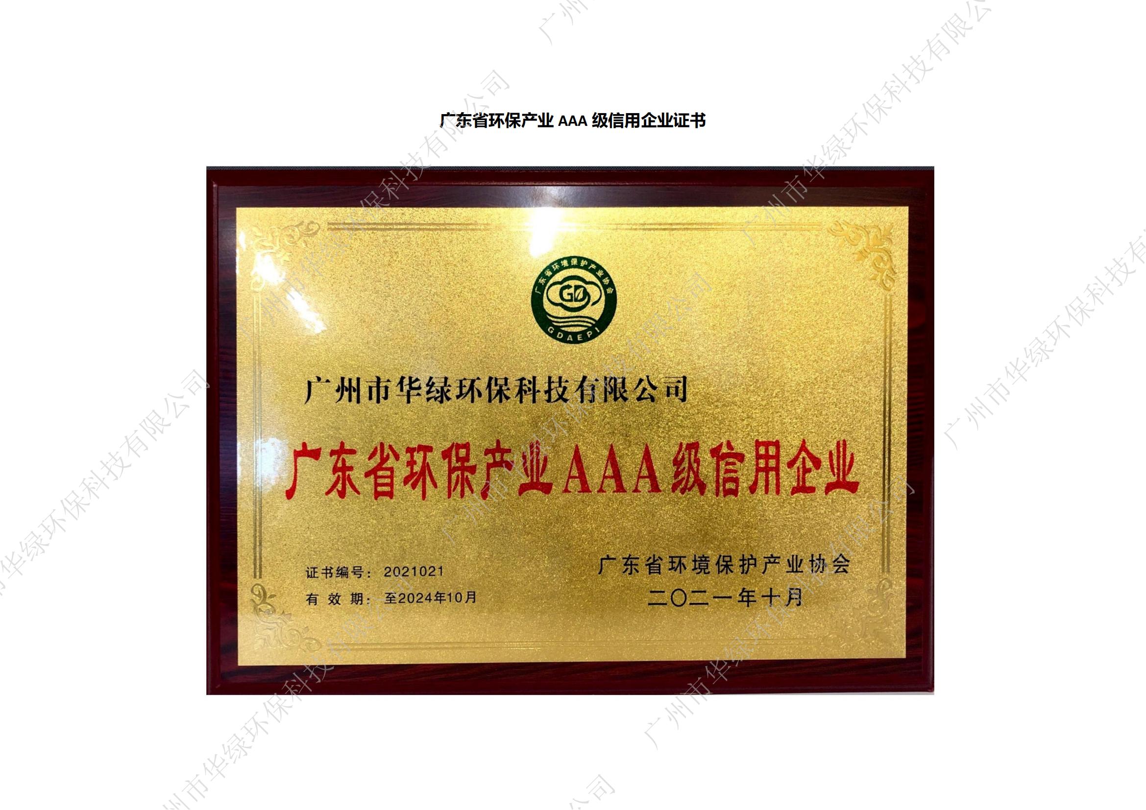 廣東省環保產業AAA級信用企業
