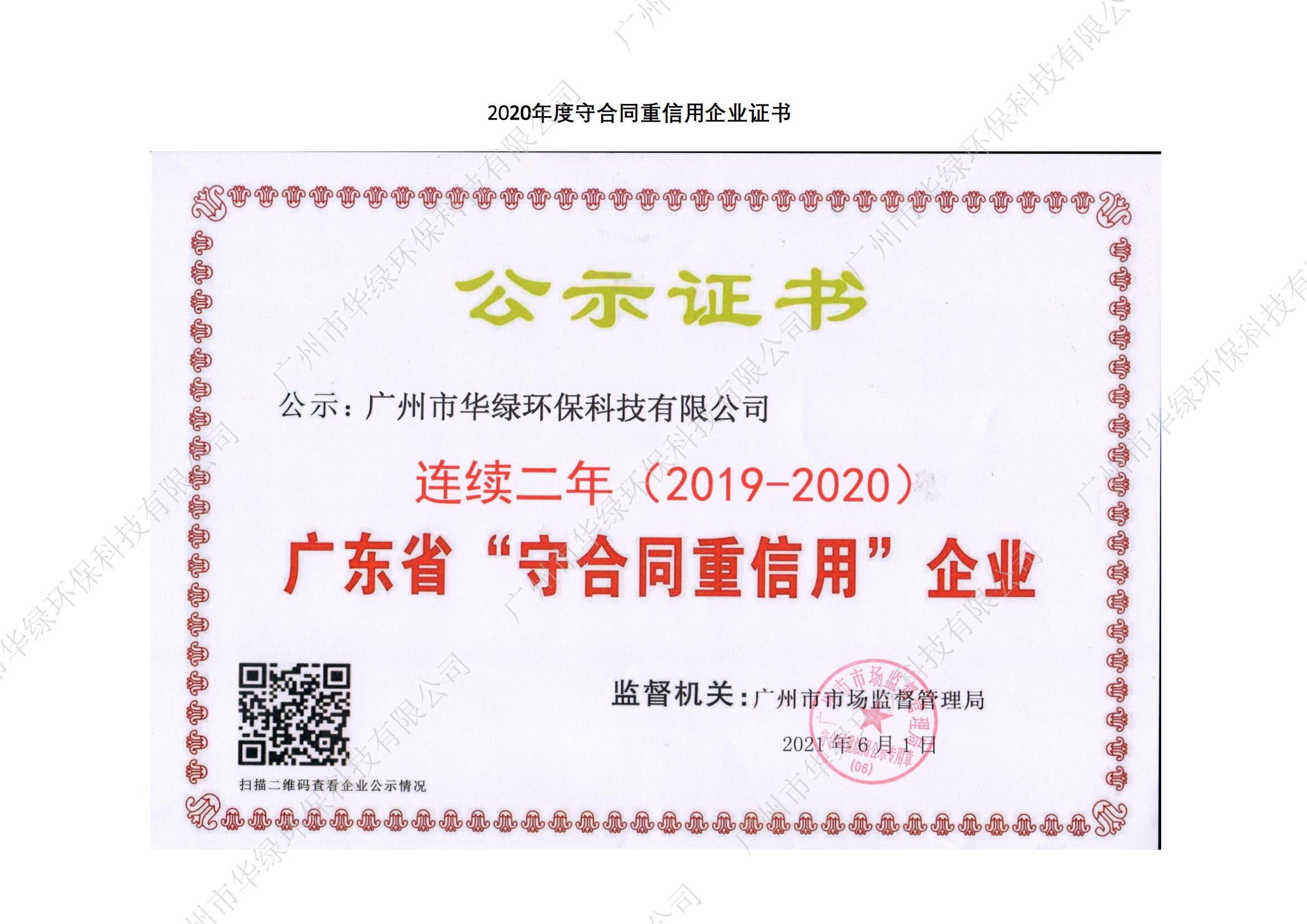 2020年守合同重信用企業